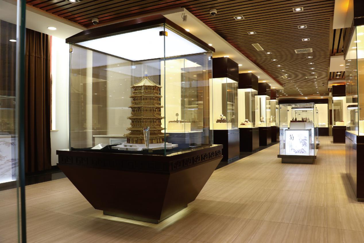 花絲鑲嵌工藝展廳是我公司特色工藝產(chǎn)品傳統(tǒng)手工藝“非物質(zhì)文化遺產(chǎn)”花絲鑲嵌技藝的展示基地。展廳面積700平米。每一件展品的展示,均彰顯出花絲晉韻文化的悠久醇厚。